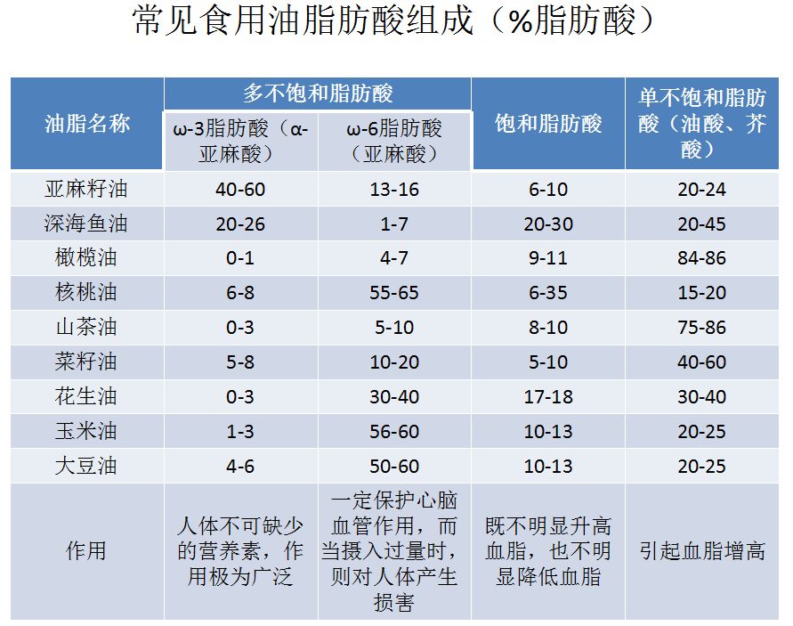 常見食用油脂肪酸組成(%脂肪酸)